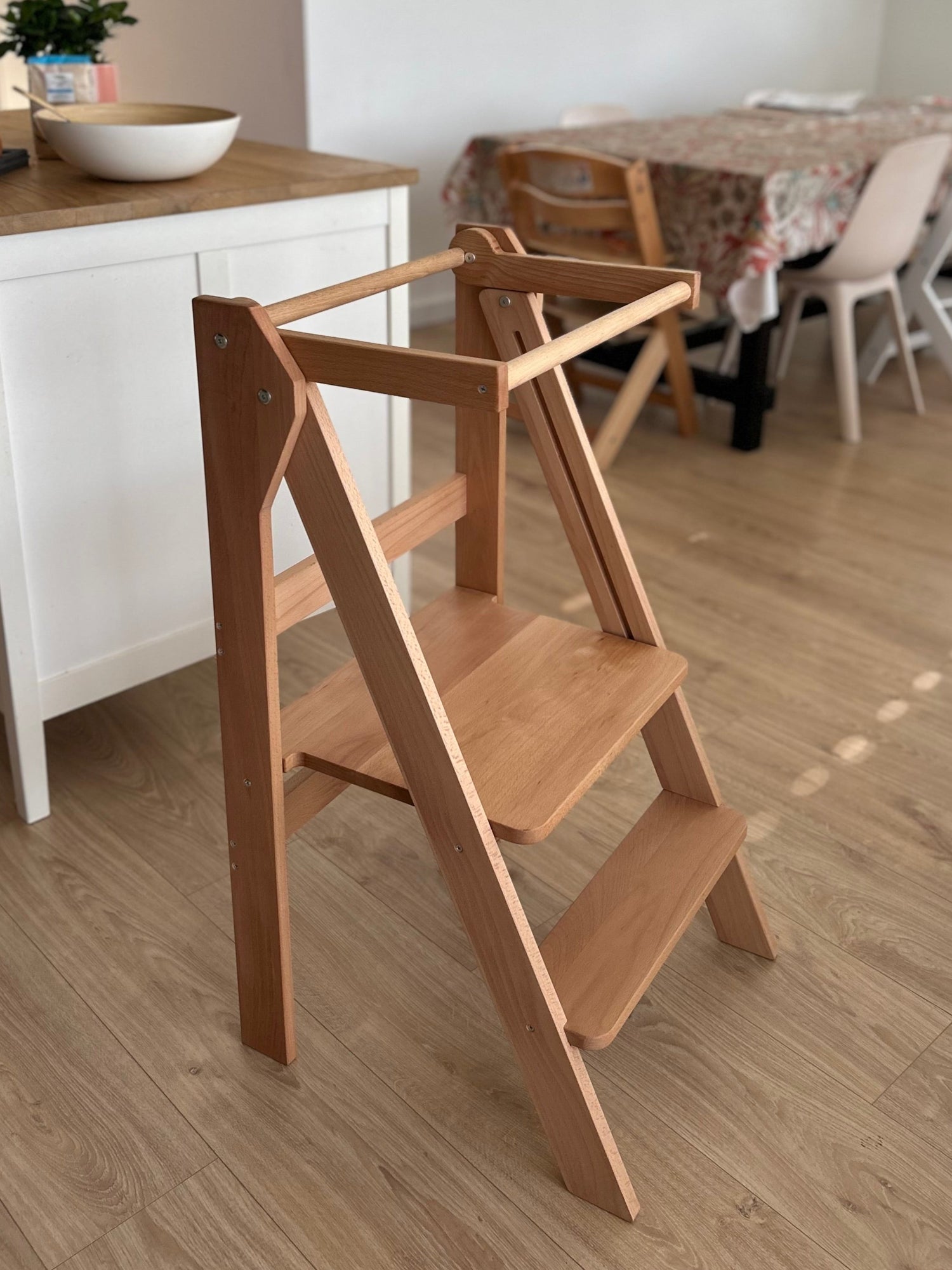 Fellépőnk tömör bükkfából készült, így a megszokott rétegelt lemezből készült verziókhoz képest sokkal strapabíróbb, időtálóbb. Sok-sok évet és több gyerkőcöt is végig fog kísérni a konyhában.
